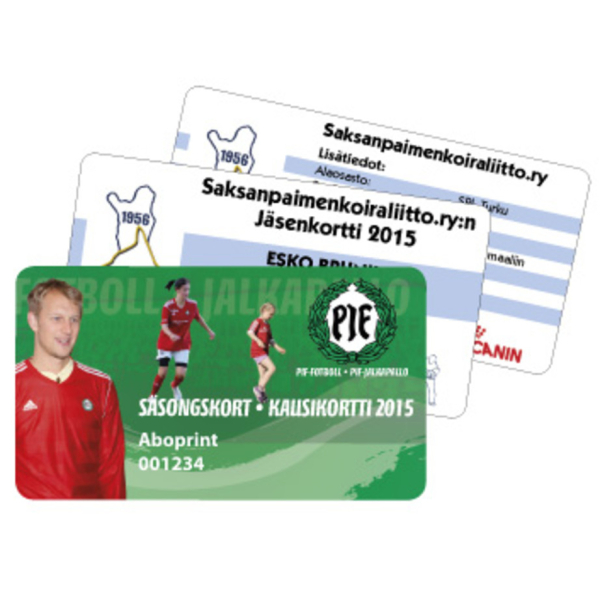 Korttiin voidaan painaa muuttuvaa tietoa, esim. nimi ja jäsennumero.