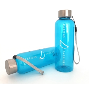 Läpinäkyvä juomapullo joustavalla pillillä. Seuran tai yrityksen omalla painatuksella. Tilavuus 500 ml.