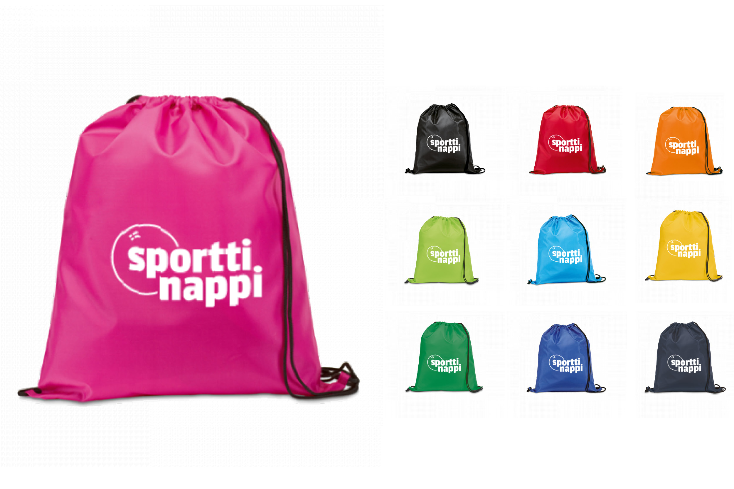 Kaikki tarvittava kulkee kätevästi mukana kankaisessa olalla kannettavassa jumppakassissa/narurepussa. Seuran tai yrityksen omalla painatuksella.