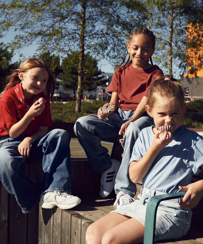 Lasten t-paita pehmeästä puuvillasta. Kaularesorissa joustavaa elastaania.