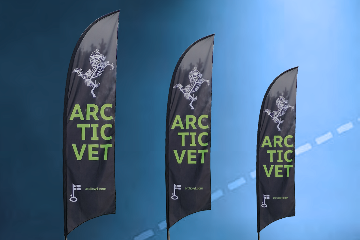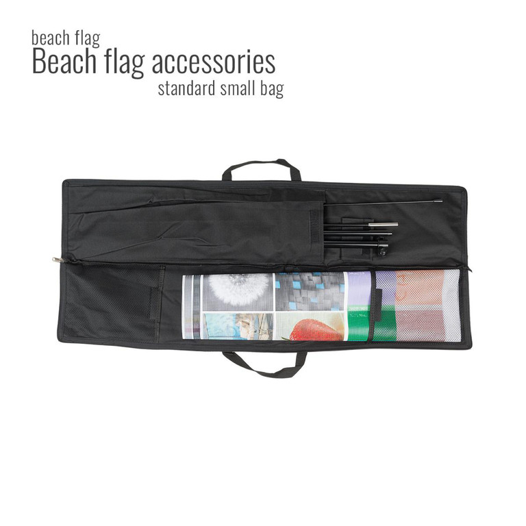 Valmiiseen pakettiin kuuluu teline, lippukangas tulostettuna, kantokassi sekä valitsemasi jalkavaihtoehto.