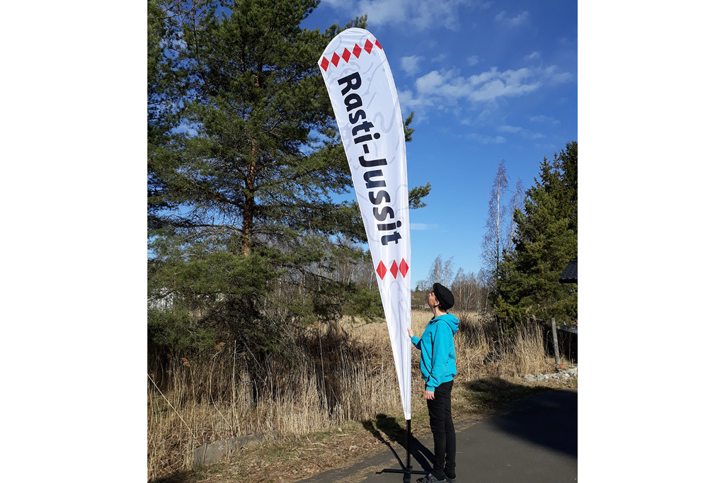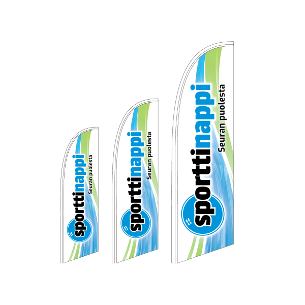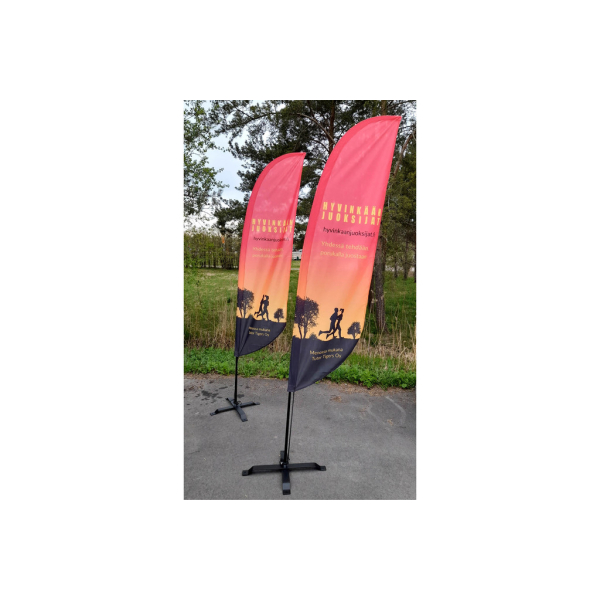 Beach Flag – Siipibanneri. Helppo pystyttää ja kuljettaa.