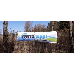 Kangasbanderolli mainoskankaaksi tapahtumapaikalle tai maalialueelle kisoihin.