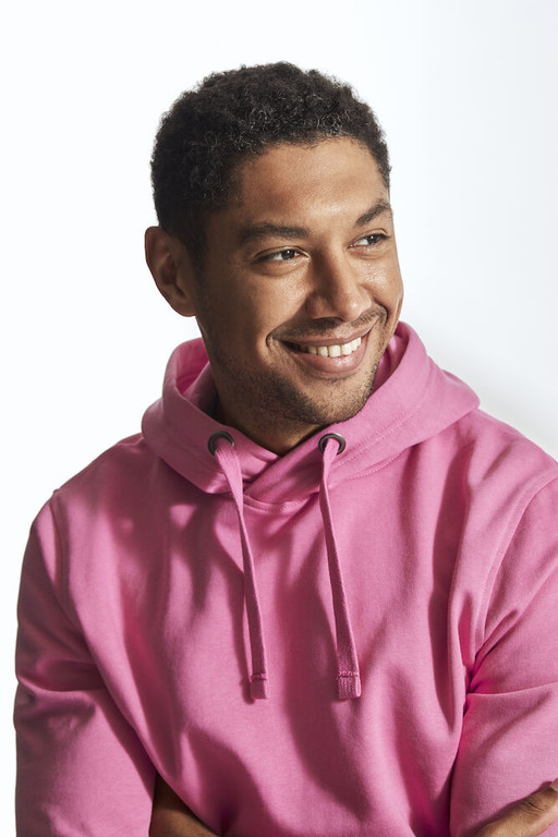 Hupullinen miesten collegehuppari, jossa harjattu pehmeä sisäpuoli. Hupussa kaksinkertainen kangas. Etutasku sekä 2x2-ribbineulos hihansuissa sekä paidan helmassa.