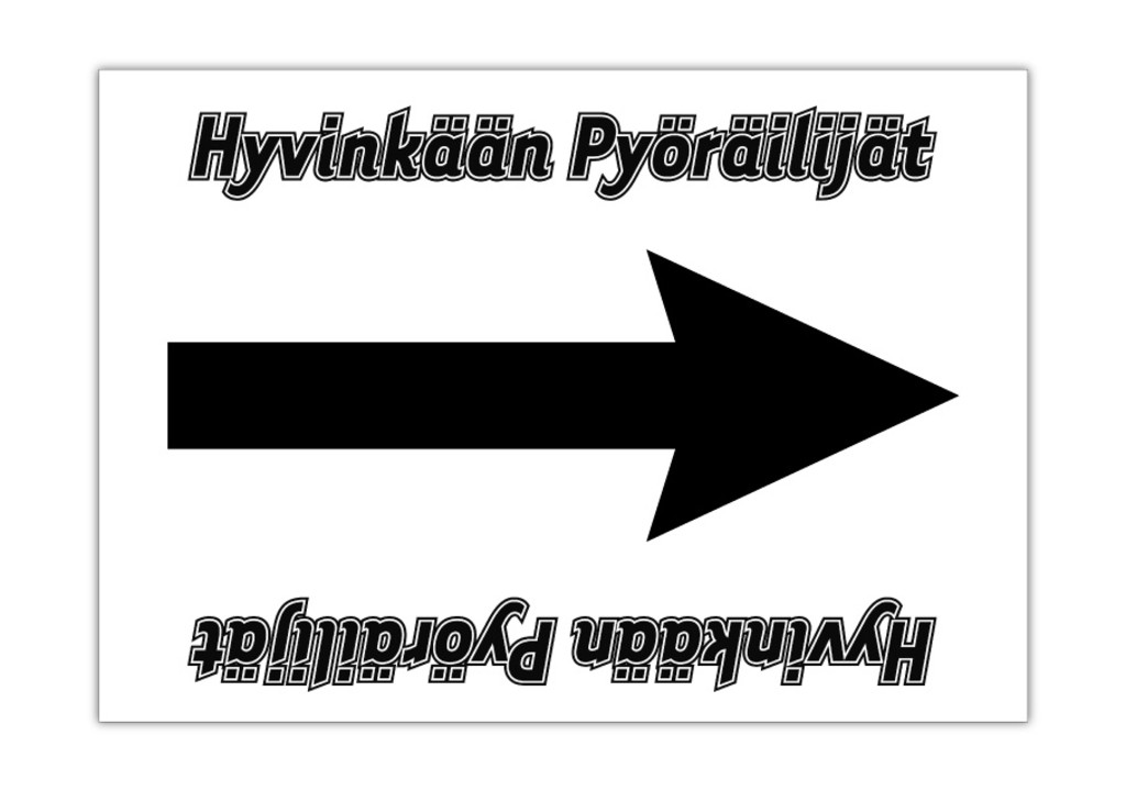 Sponsorilogo / tapahtumanimi painetaan sekä nuolen ylä- että alapuolelle, niin että samaa suuntanuolta voi käyttää molempiin suuntiin.