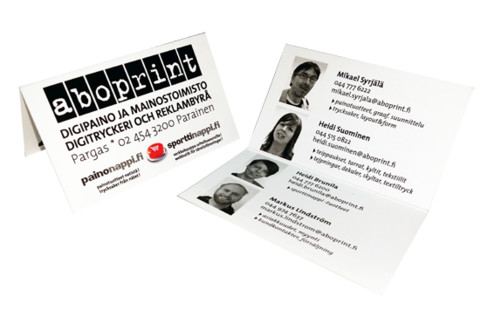 Taitettu käyntikortti/yrityskortti 90 x 55 mm.